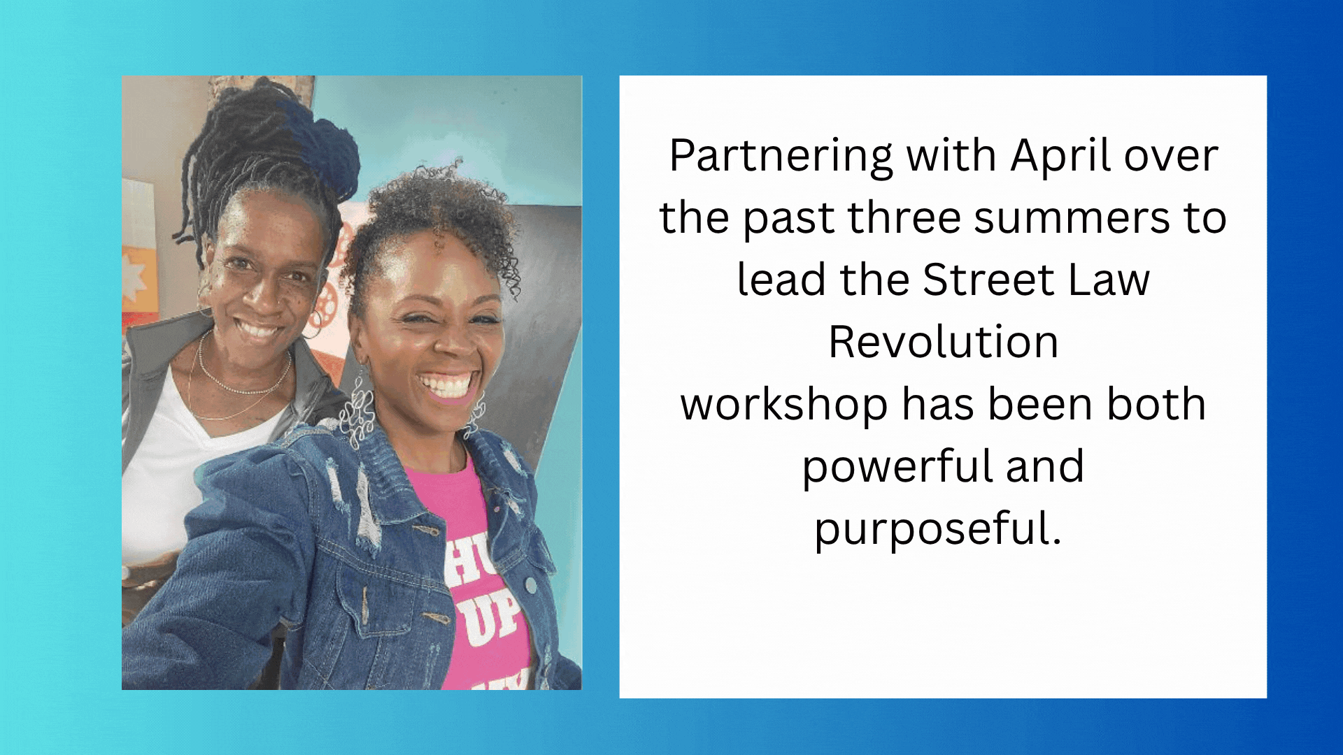 Street Law Revolution is our in-person workshop series for youth ages 13 - 24.